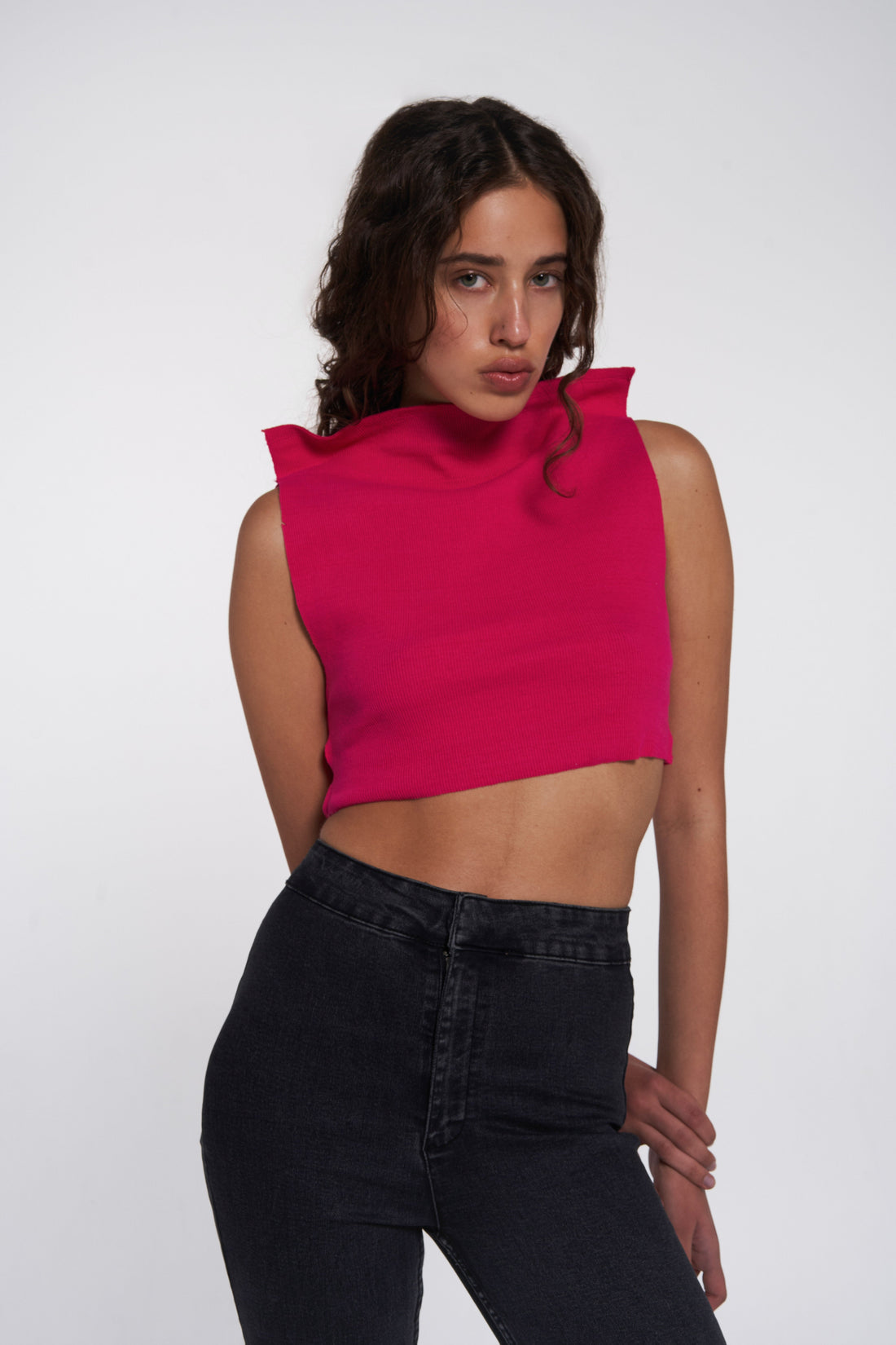 rough ribbed top in fuchsia ribbed top is made in a minimalist design, which is...