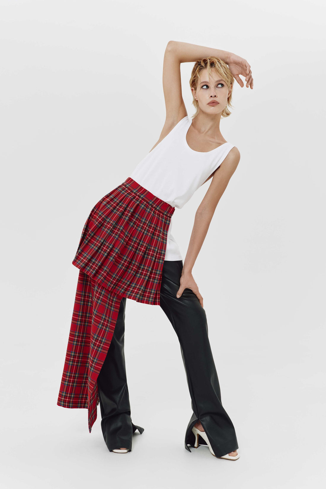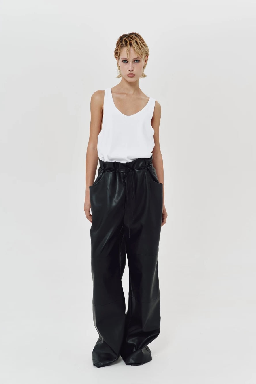 the Punky eco-leather pants feature a relaxed fit with a high waist that accentuates the...
