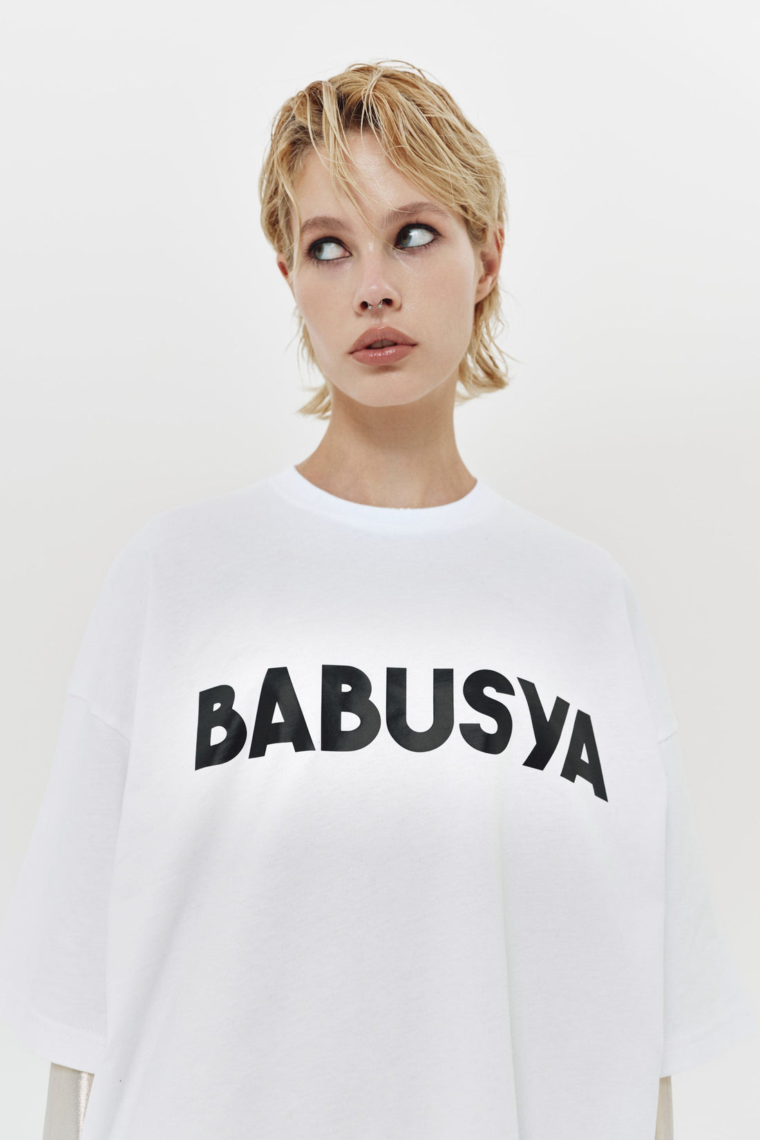 "Babusya" White T-Shirt — Embrace the Present Momentthe "Babusya" white t-shirt serves as a reminder...
