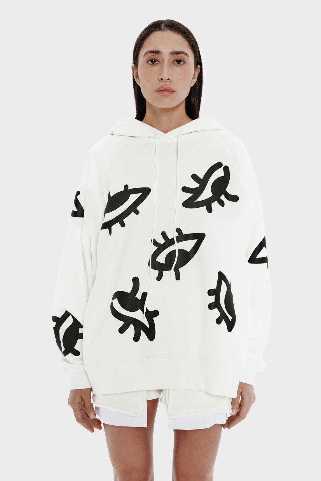 the hoodie "eyes" in milky color from the WOMAN collection is made in an oversize...