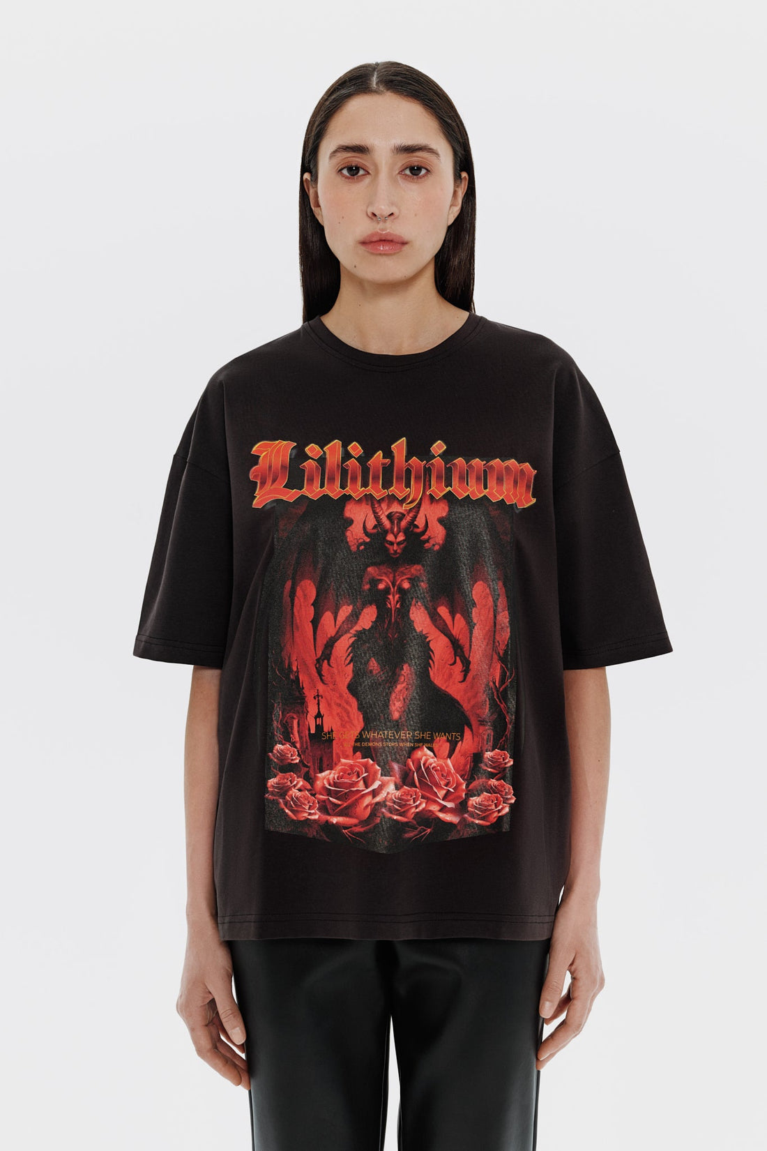 t-shirt "lilithium"  in graphite color with a large accent print in the middle from the...