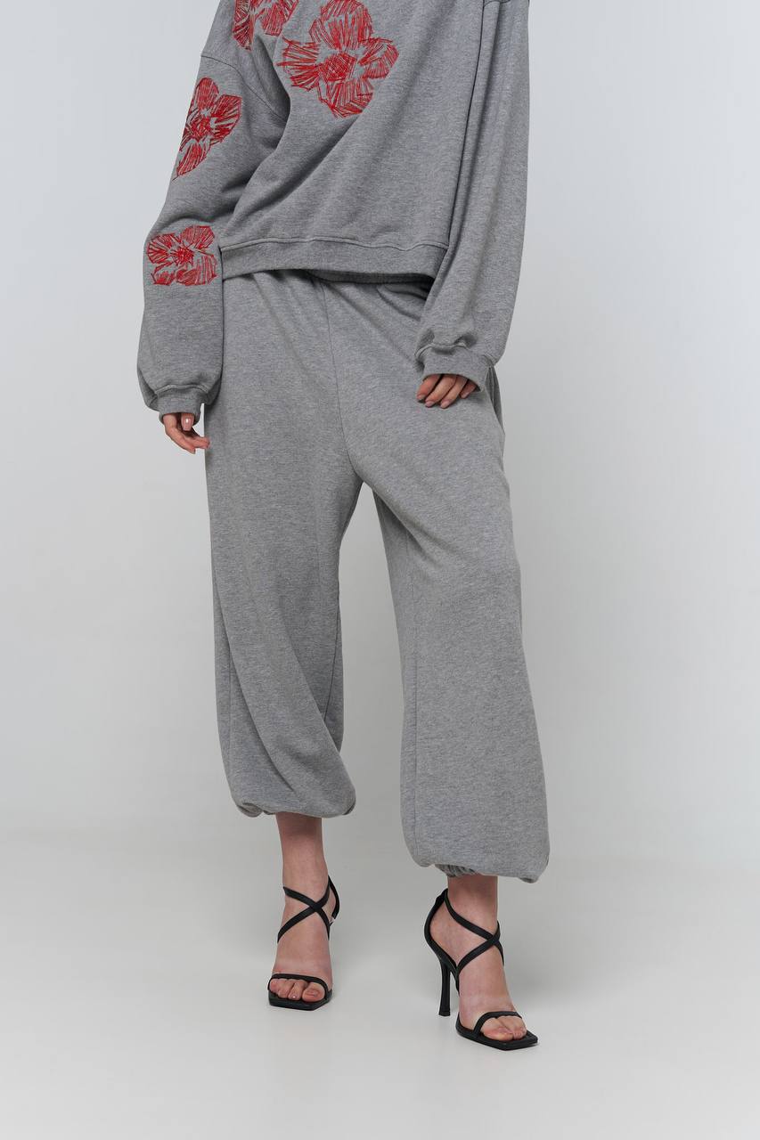 oversized pants "groove" in grey melange color have two side pockets, and drawstrings on the...