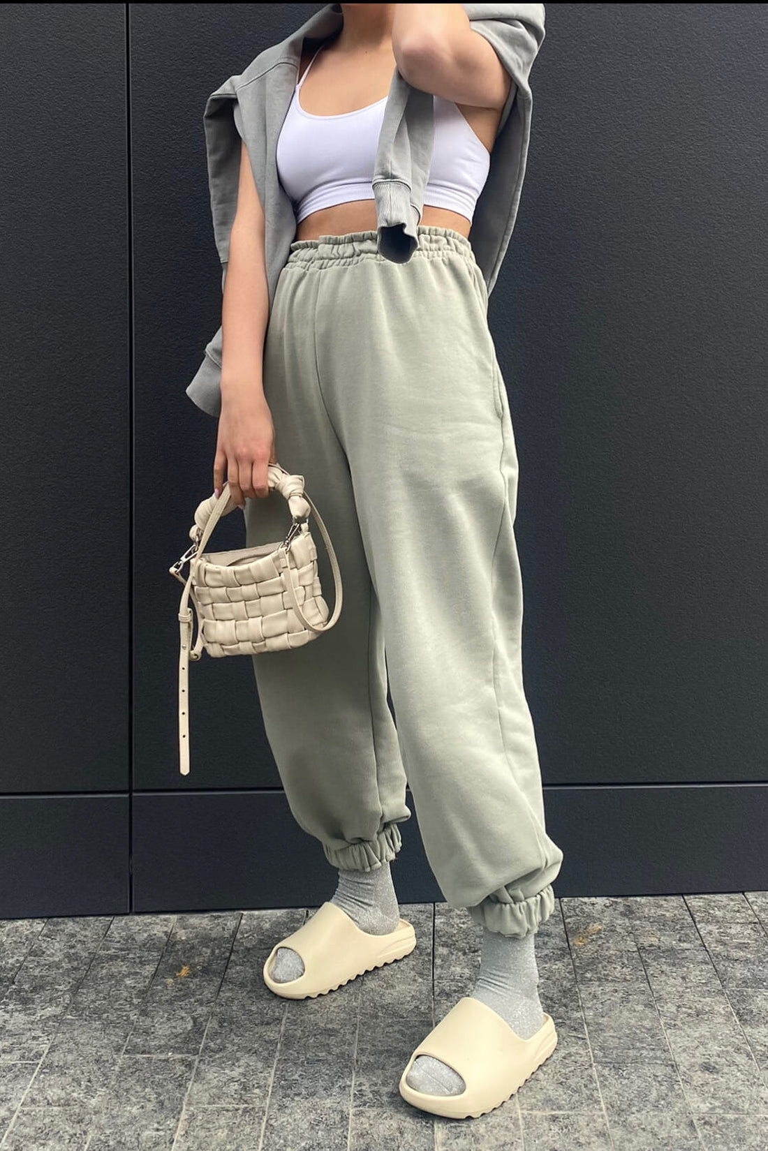 oversized pants "groove" in forest color have two side pockets, and drawstrings on the inside,...