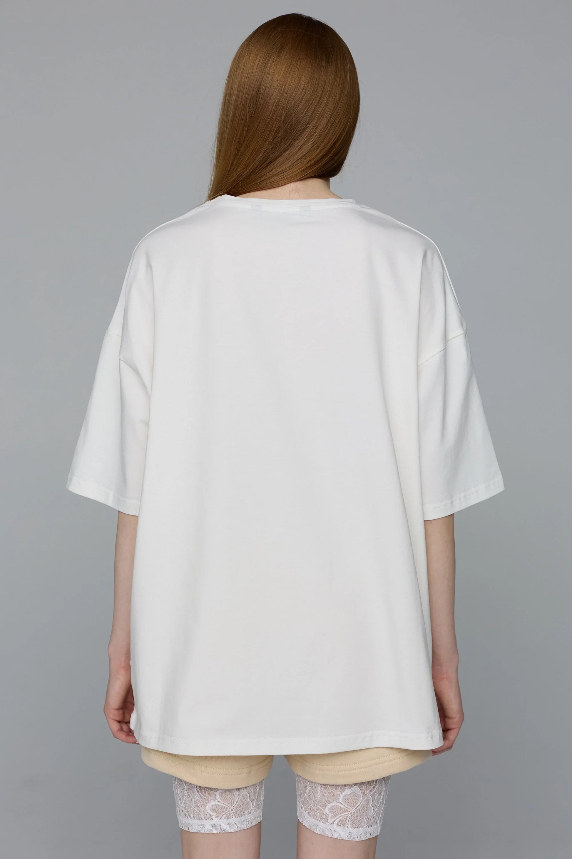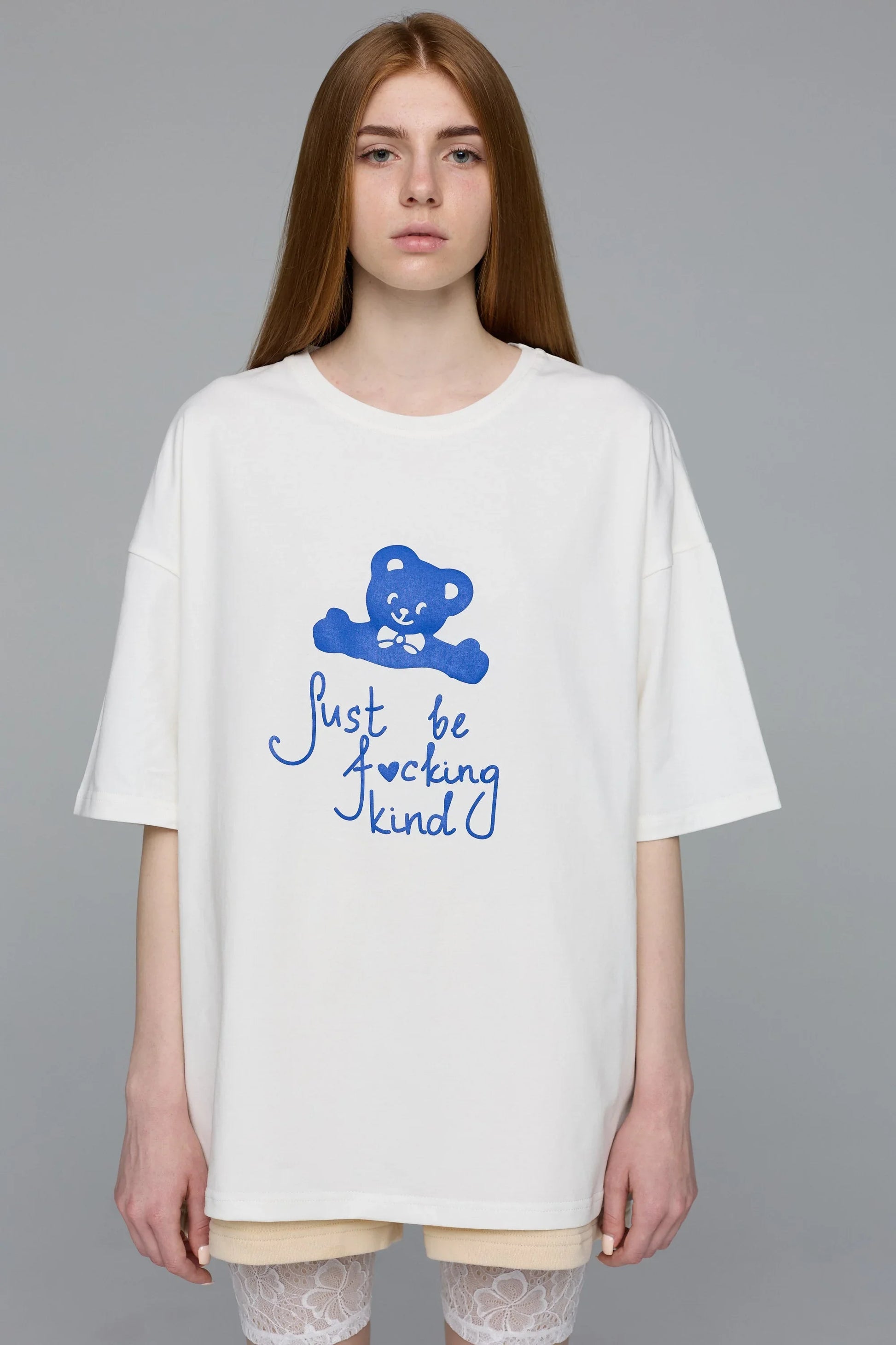 a white kind t-shirt with a bear print on the front. the relaxed fit makes it perfect for active days, workouts, or just taking it easy. this everyday staple pairs effortlessly with jeans, shorts, leggings, skirts or tracksuits.