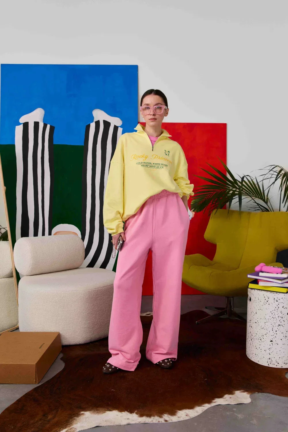 "rocky princess" sweatshirt – loose fit, deep burgundy color, high collar with a zipper, and a red print that adds character