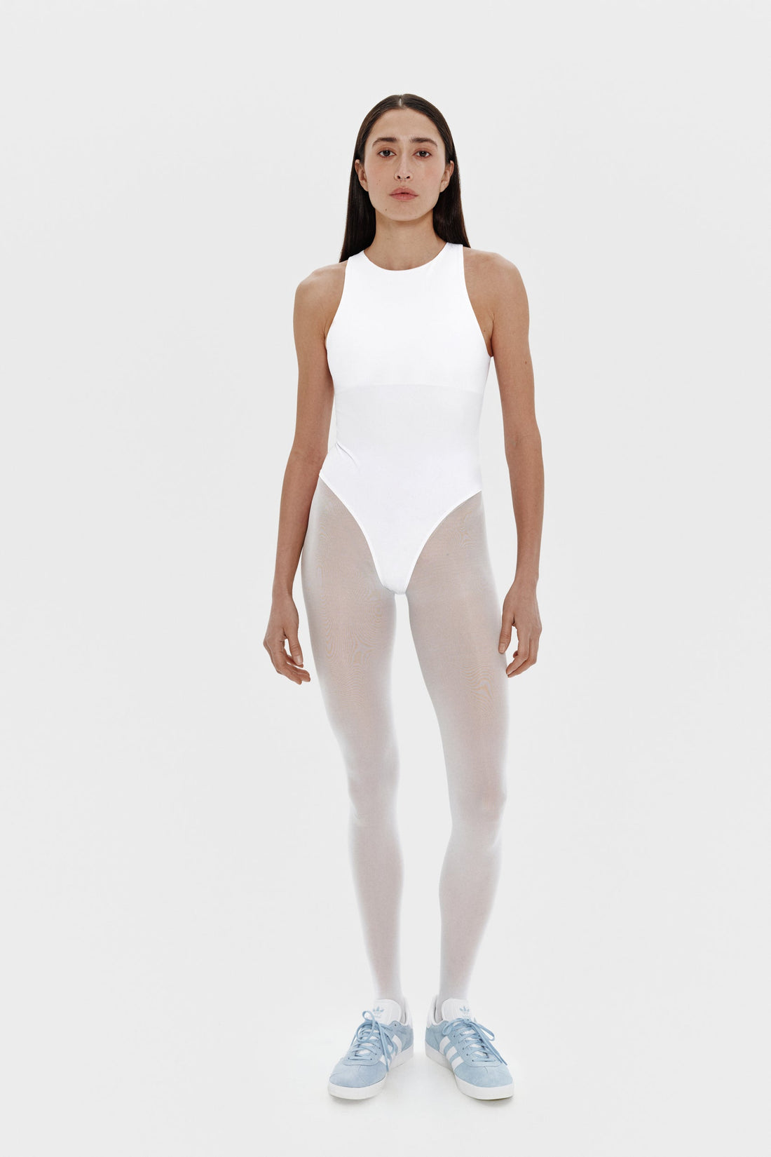Dasha is 5’7”, wears a size L, and her measurements are 43.3” bust, 30.7” waist, and 45.3” hipsCOMPOSITION: polyamide 81%, elastane 19%, elastic mesh has high elasticity and restores its shape after stretching. the material is soft, matte and pleasant to the touch