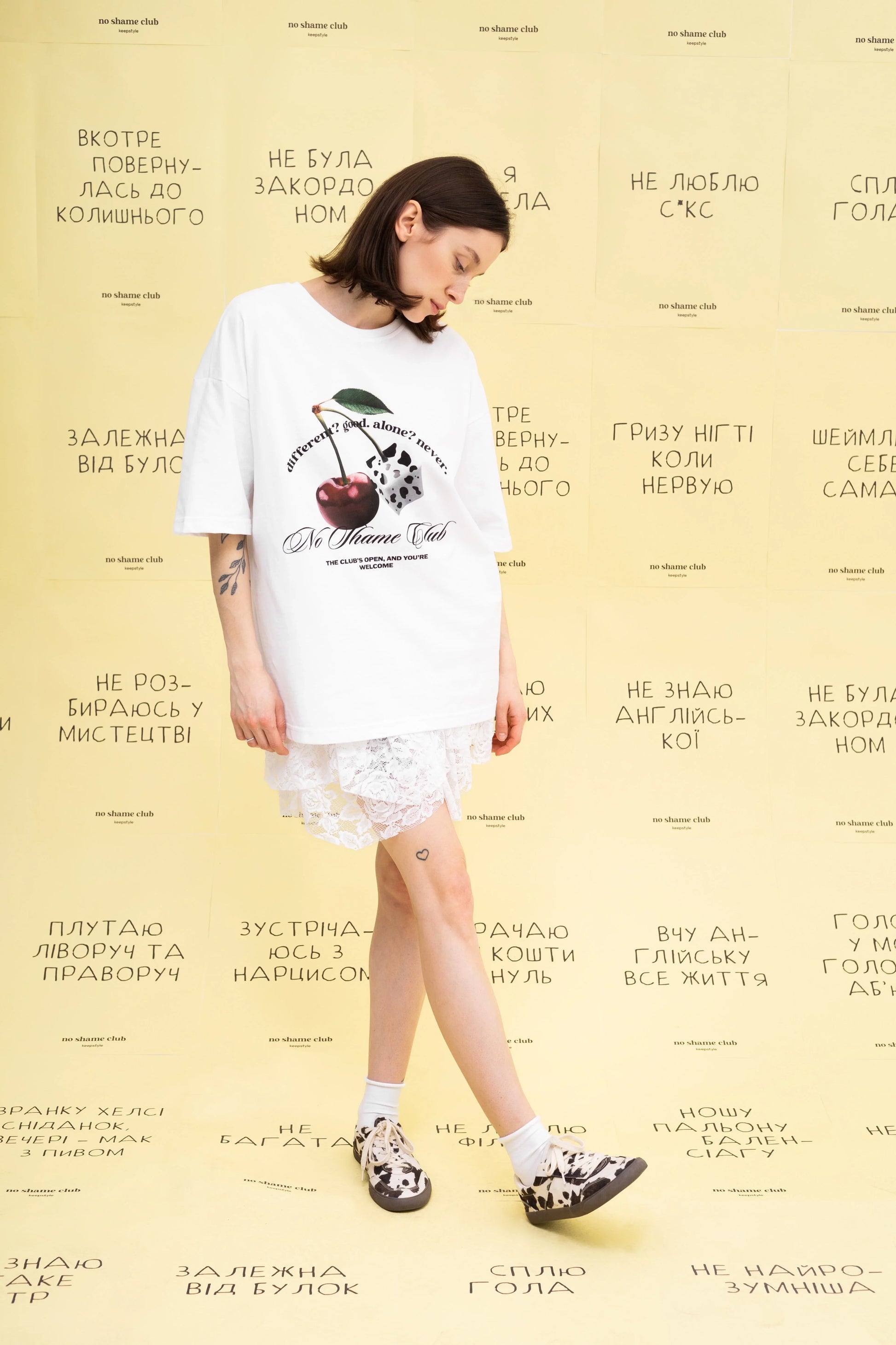no shame club t-shirt — oversize fit, bold front print, as the reminder you needed