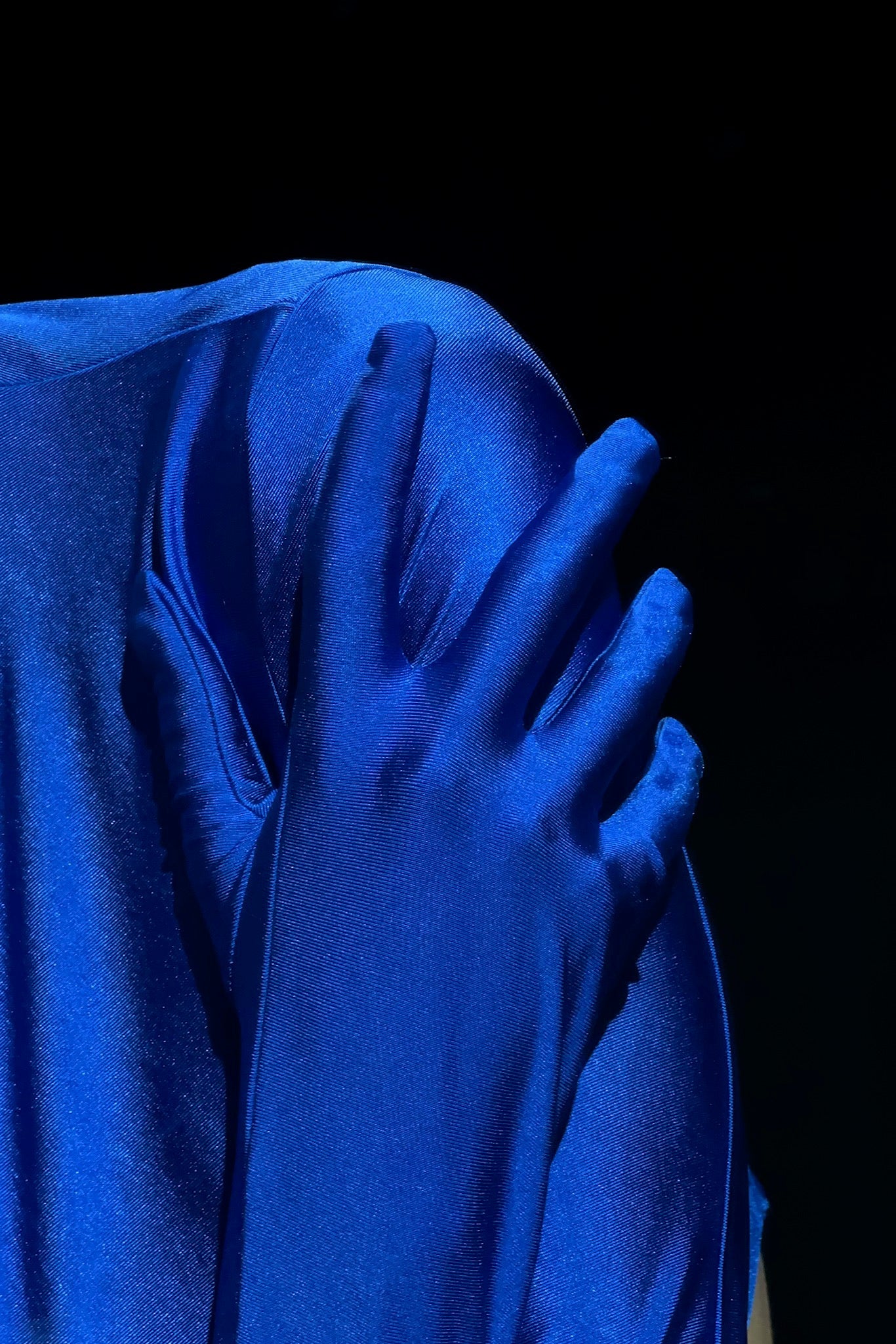 crop top in electric blue is a great addition to your evening look. the tight-fitting top fits perfectly on the figure due to the elastic biflex, which stretches well, does not hinder movements, and gives it a luxurious and shiny appearance, so you can dance, take selfies and be the center of attention. the sleeve comfortably turns into a glove that can be easily removed and turned into an accessory