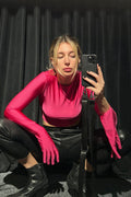 crop top in fuchsia color is a great addition to an evening look. the crop top fits perfectly on the figure due to the elastic biflex, which stretches well, does not hinder movements, and gives it a luxurious and shiny appearance, so you can dance, take selfies and be the center of attention. the sleeve comfortably turns into a glove that can be easily removed and turned into an accessory